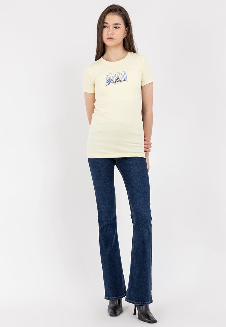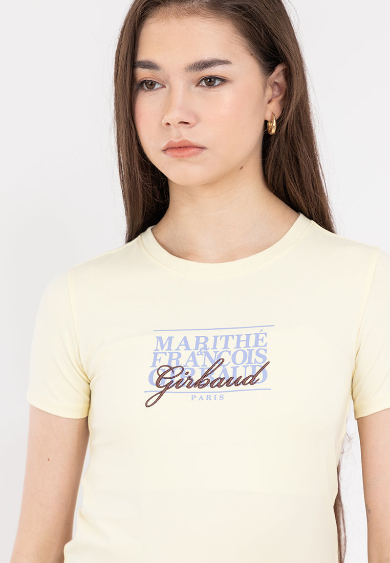 The Marithe Francois Girbaud Ladies OG Script Tee features a classic crew neckline, a regular fit, and a contrast graphic script print for everyday streetwear style.