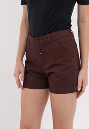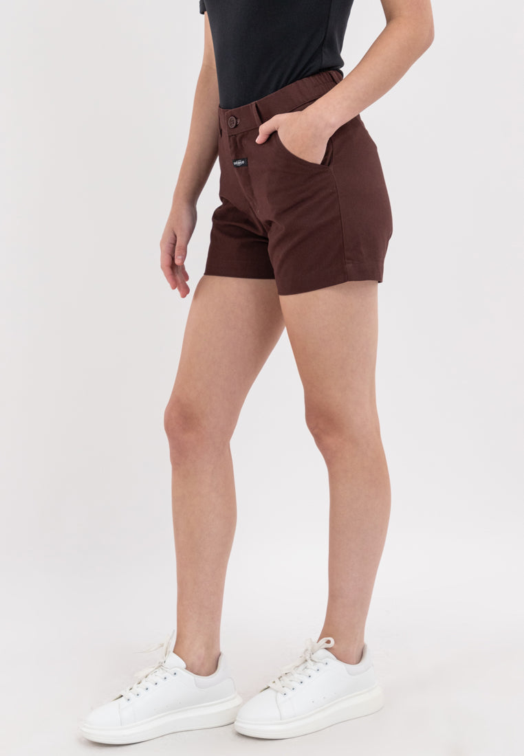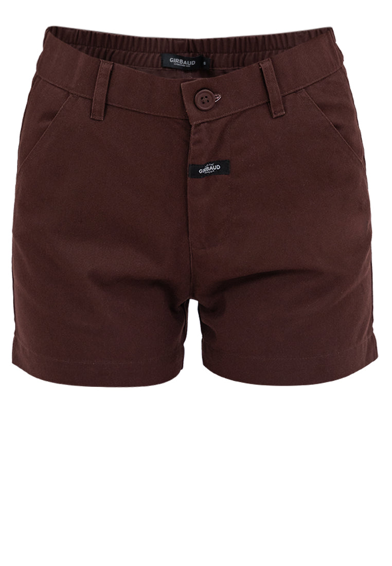 Expand your wardrobe rotation with Marithe + Francois Girbaud's Women's Girbaud Brown G-Easy Short, featuring an elastic back waist for a customized fit.