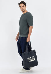 Carry your essentials conveniently with Marithe + Francois Girbaud's Men's Denim Tote Bag, boasting a washed denim fabrication, roomy compartment and bold branding to the front for added statement.