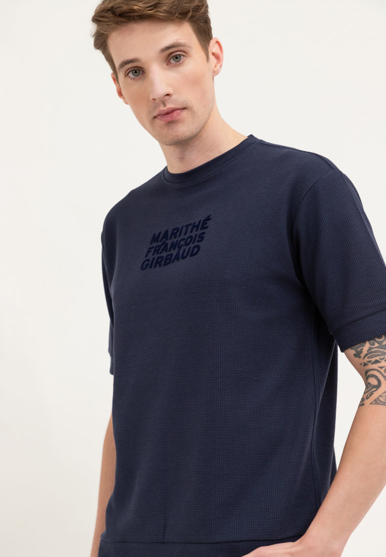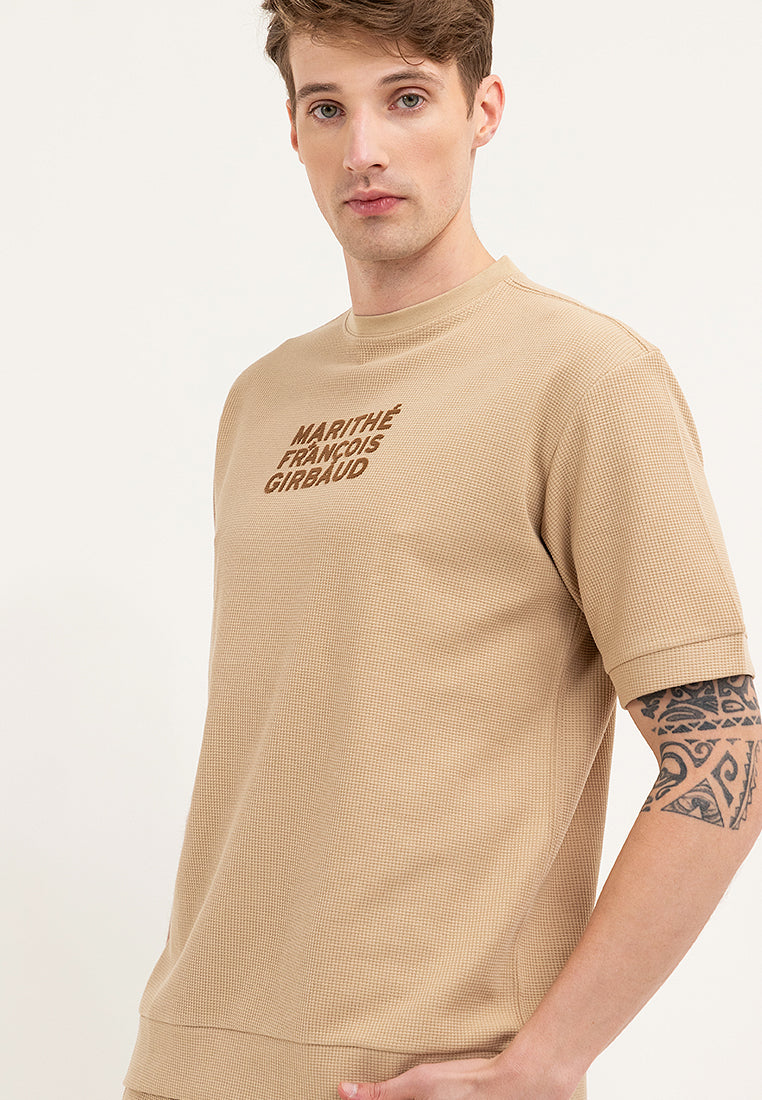 Expand your wardrobe rotation with Marithe + Francois Girbaud's Men's Waffle Tee, cut from textured fabrication and features a tonal branding at its center chest.