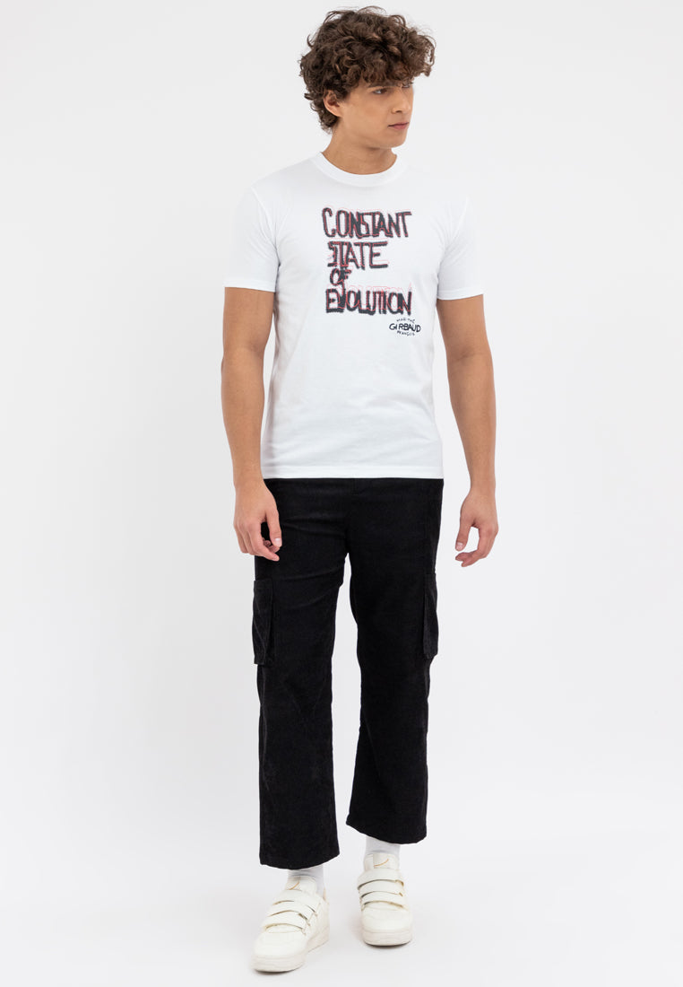 Expand your wardrobe rotation with Marithe Francois Girbaud's Men's Evo Graphic Tee, featuring a striking slogan graphic for added appeal.
