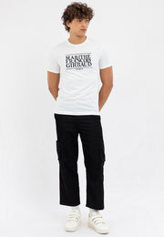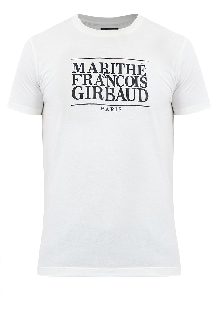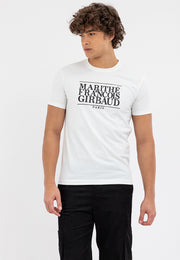 Expand your wardrobe rotation with Marithe Francois Girbaud's Men's OG Tape Print Tee, featuring a branding graphic for added appeal.
