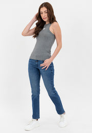 Expand your wardrobe rotation with Marithe Francois Girbaud's Ladies MFG Halter Top, cut from ribbed fabric and finished with a minimal branding graphic at its center for a premium feel.