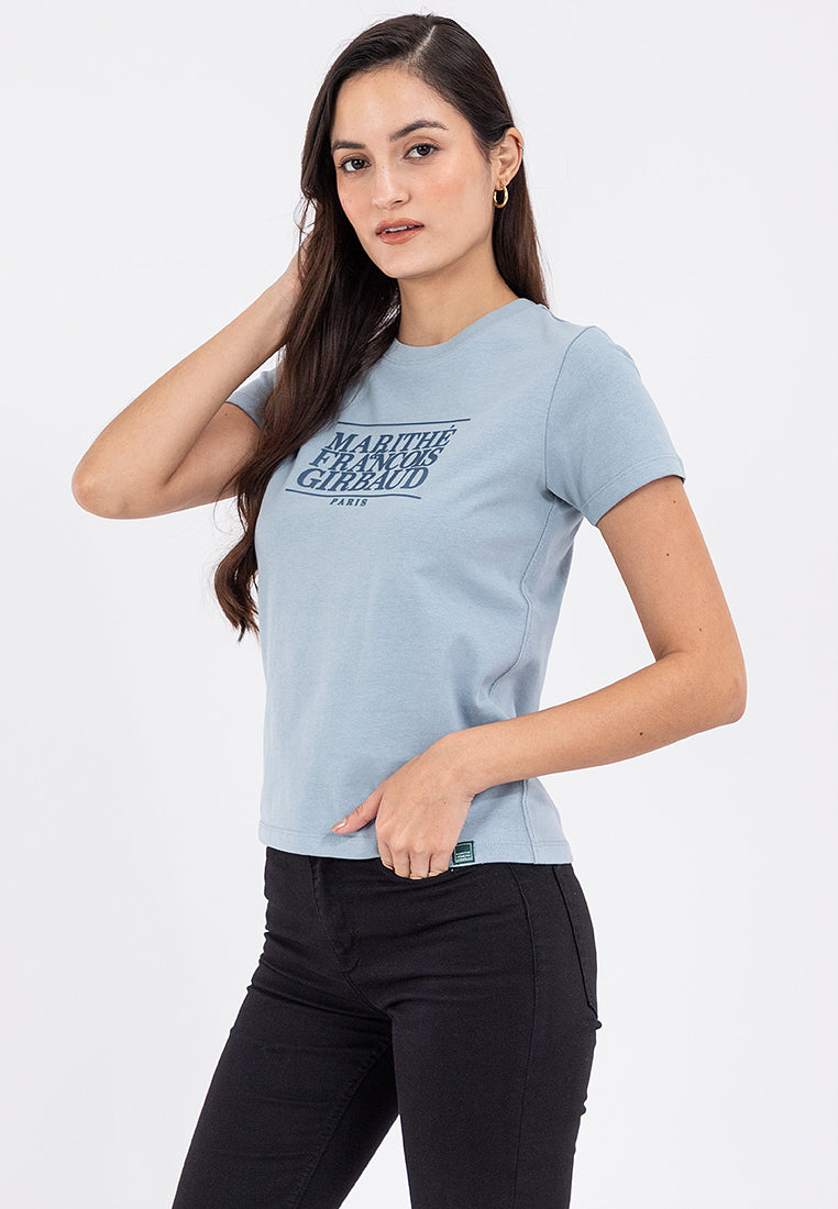 Expand your wardrobe rotation with Marithe Francois Girbaud's Ladies OG L Organic Tee, cut from a muted colorway and finished with a branding graphic at its chest.