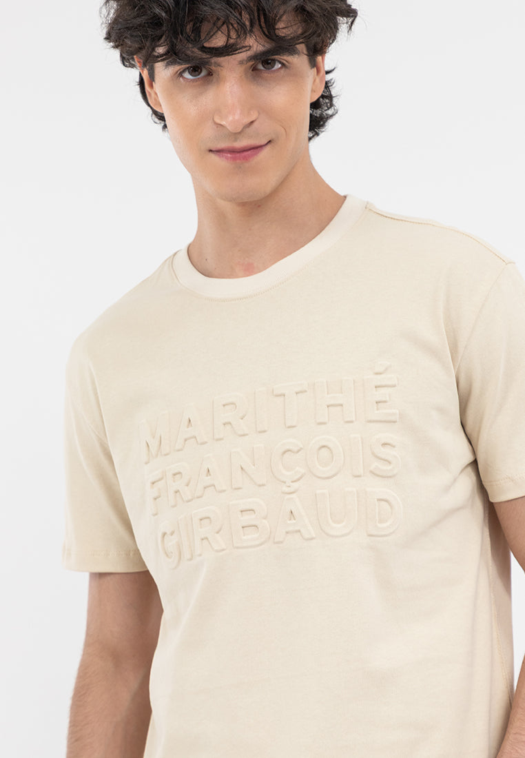 Infuse a striking statement to your looks with Marithe + Francois Girbaud's Men's OG Organic Tee which features a debossed tonal branding graphic to its front.