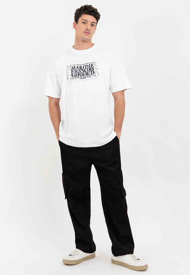 Expand your wardrobe rotation with Marithe Francois Girbaud's Men's OG Shadow Tee, featuring a striking branding chest graphic for added statement.