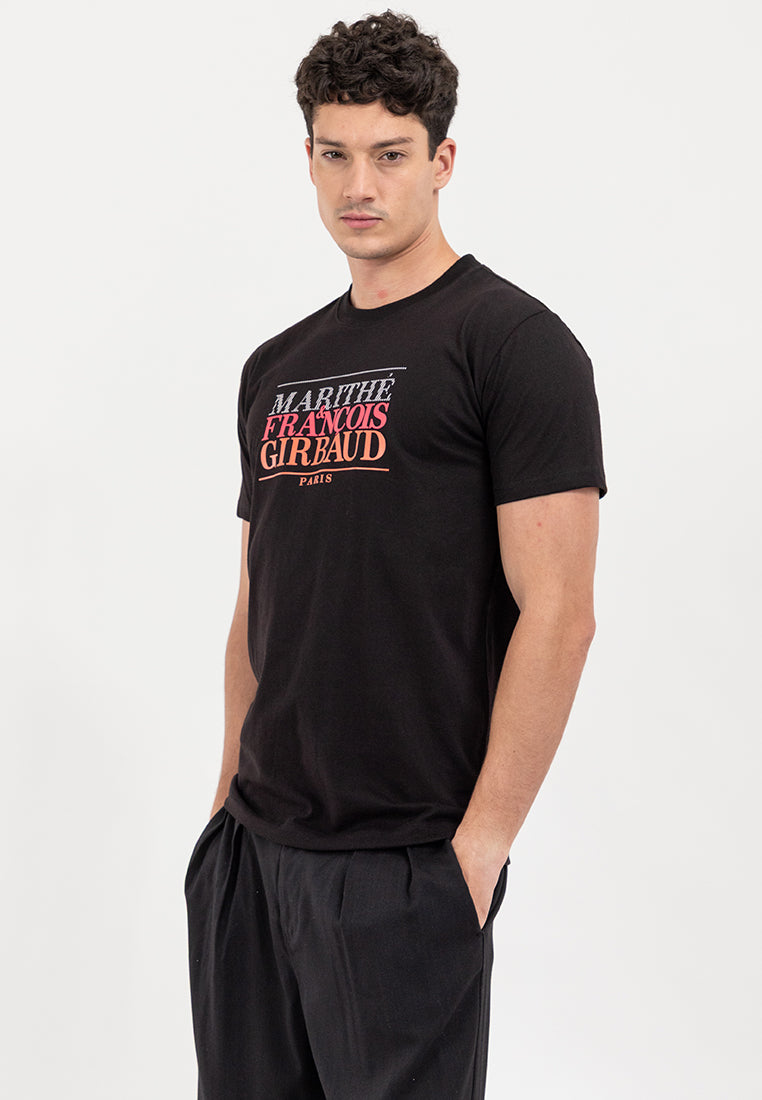 Expand your wardrobe rotation with Marithe Francois Girbaud's Men's OG Tri Paris Tee, cut from a classic colorway and finished with a branding graphic at its chest for added statement.