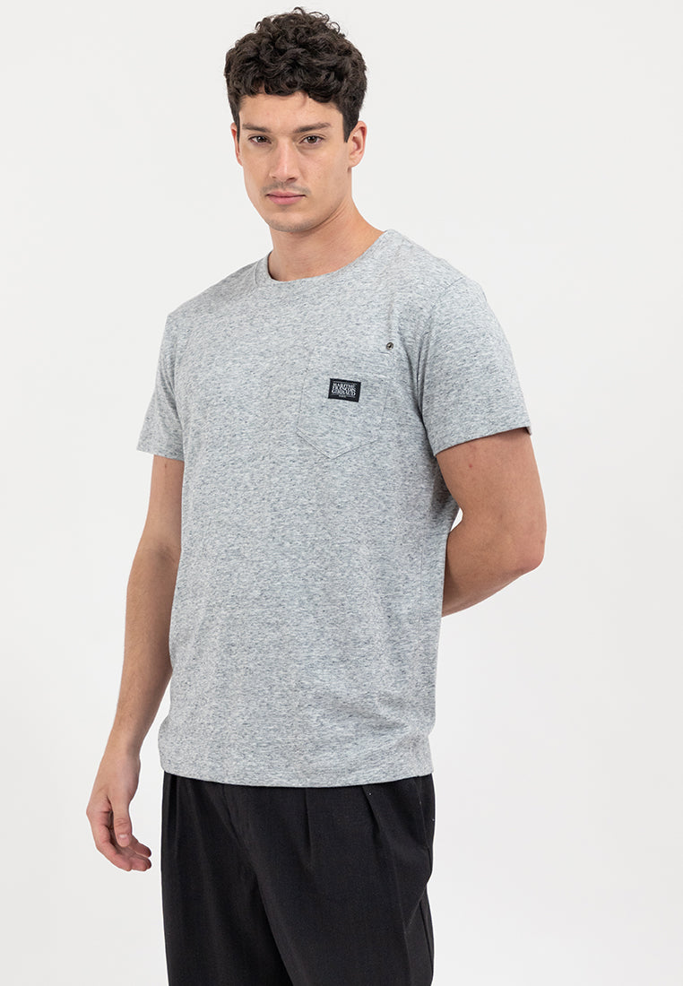 Expand your wardrobe rotation with Marithe Francois Girbaud's Men's Pocket Slub Tee, cut from a mélange fabrication and finished with a woven brand label for a premium feel.
