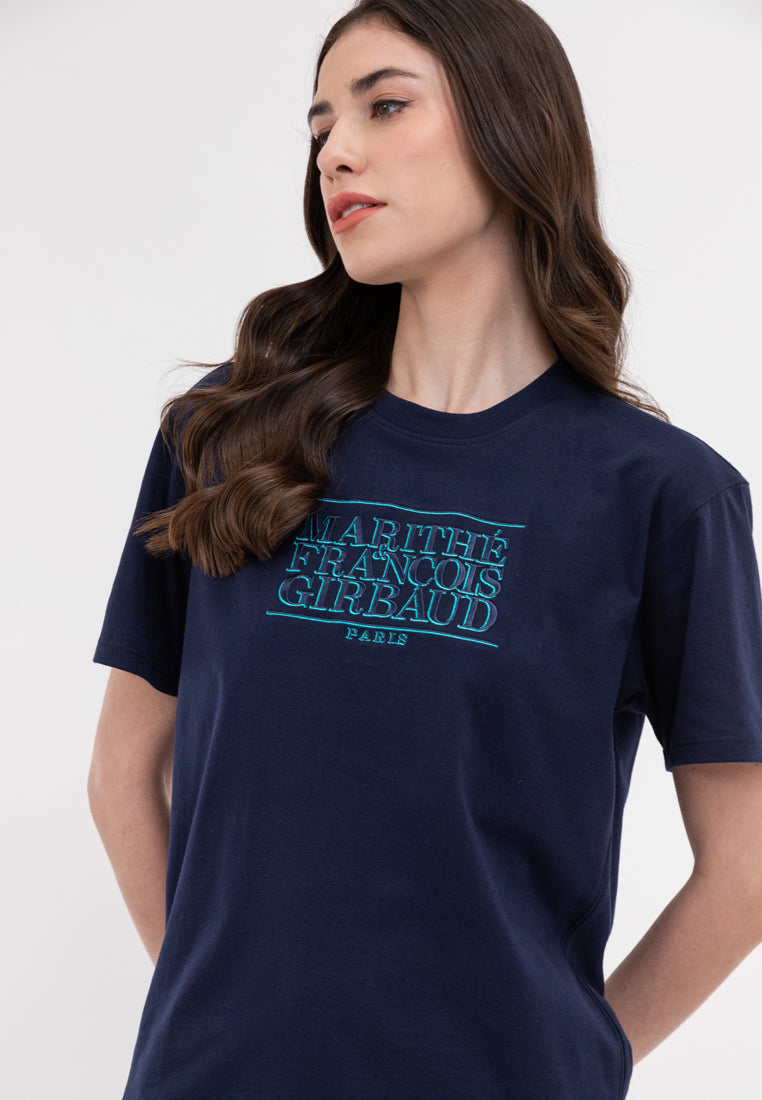 Complete your wardrobe rotation with Marithe + Francois Girbaud's Ladies T 1972 Loose Tee, featuring a classic colorway and a branding on its front for added appeal.