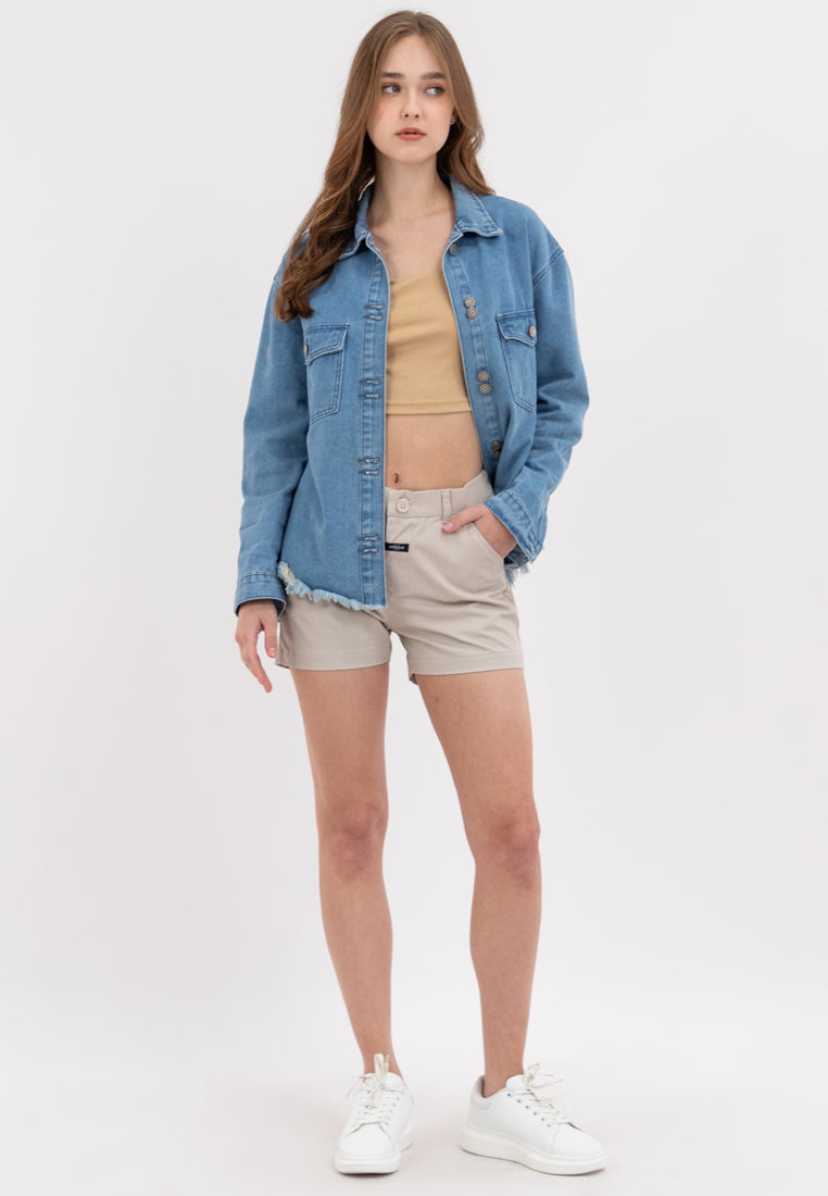 Expand your wardrobe rotation with Marithe + Francois Girbaud's Women's Girbaud Off White G-Easy Short, featuring an elastic back waist for a customized fit.