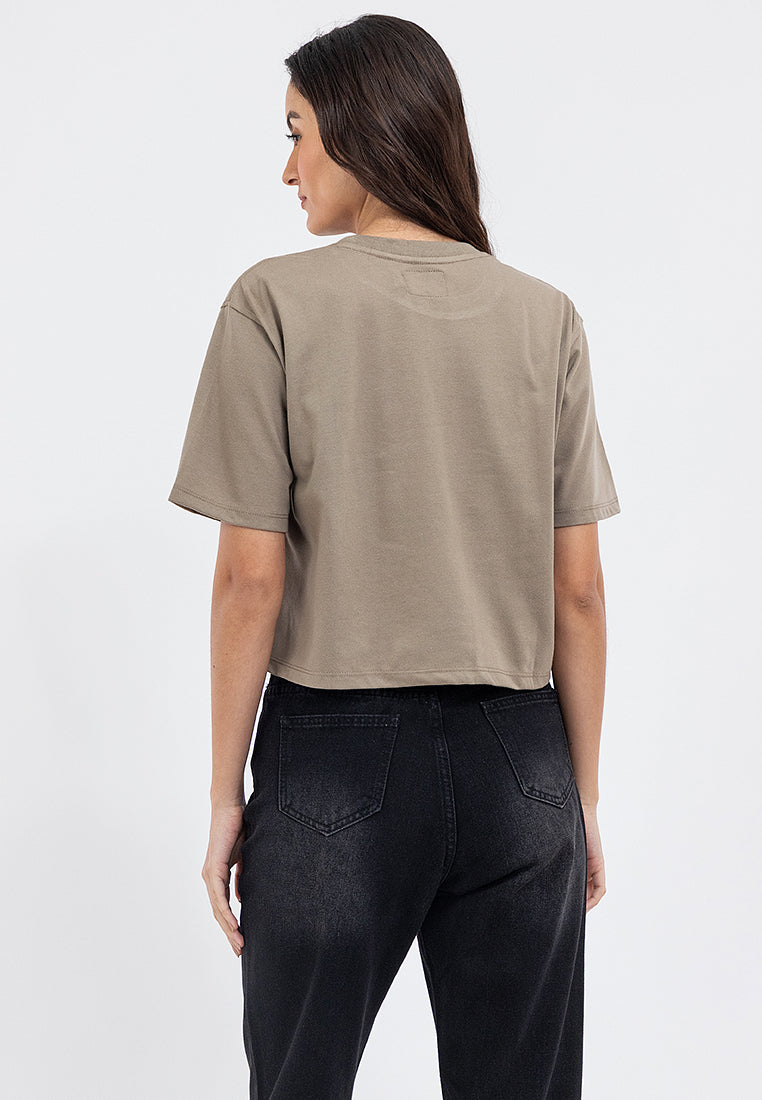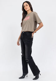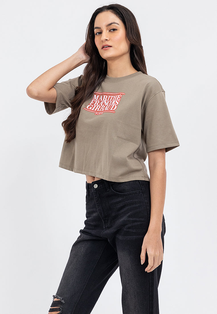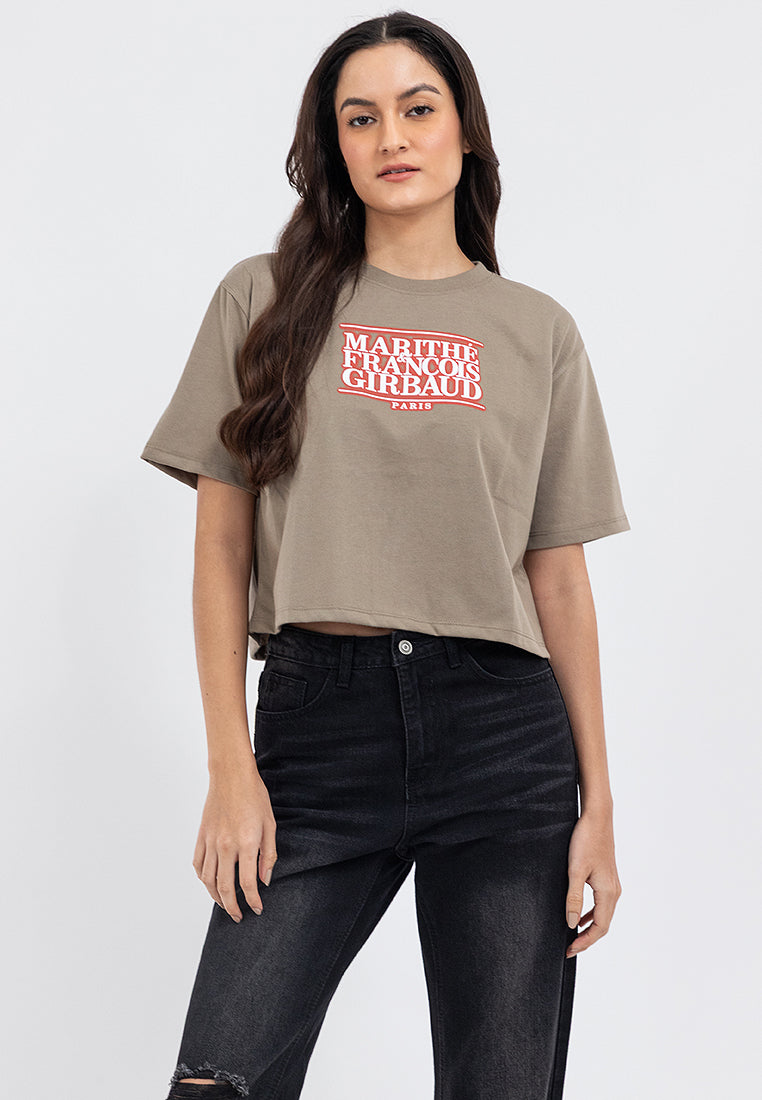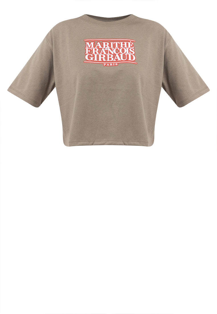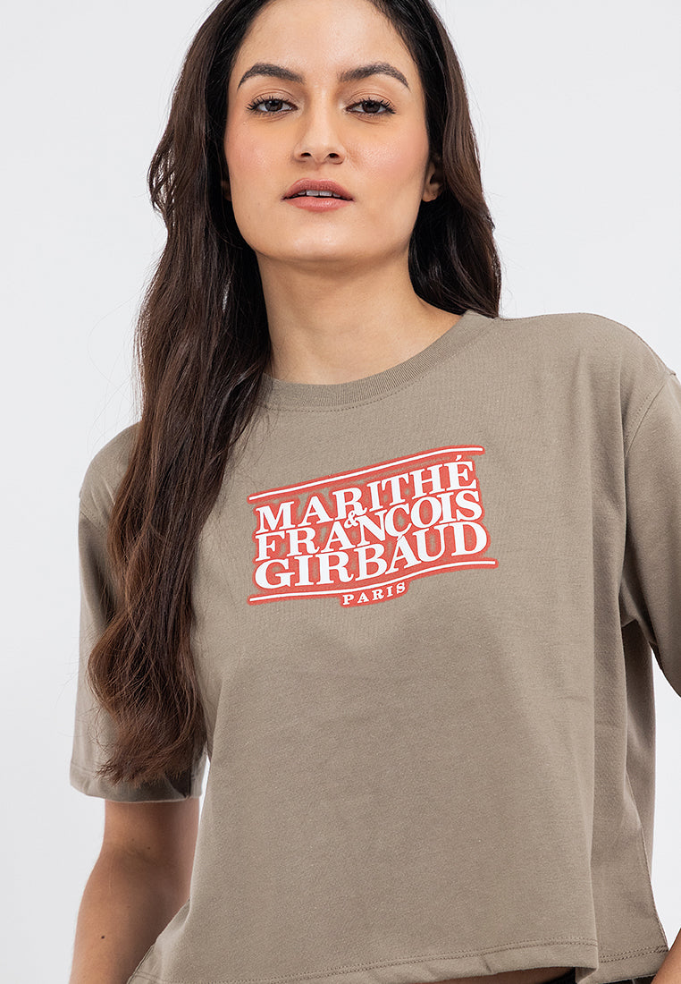 Ladies OG Crop Tee from Marithe Francois Girbaud features a bold logo graphic, paired with a crew neckline, short sleeves, and a casual fit.