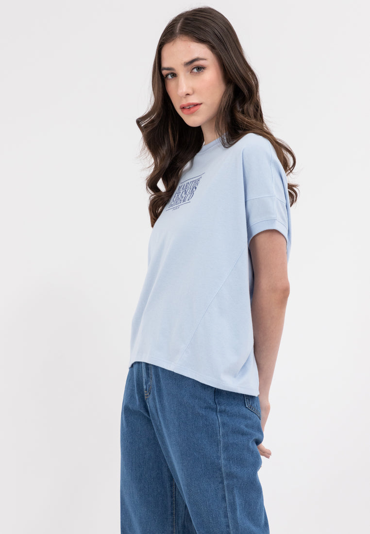 Complete your wardrobe rotation with Marithe + Francois Girbaud's Ladies Kayla 1972 Tee, featuring a relaxed silhouette and a branding graphic on its front for added appeal.