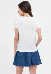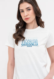 Complete your wardrobe rotation with Marithe + Francois Girbaud's Ladies OG L Denim Tee, featuring a classic colorway and a gradient branding embroidery on its front for added appeal.
