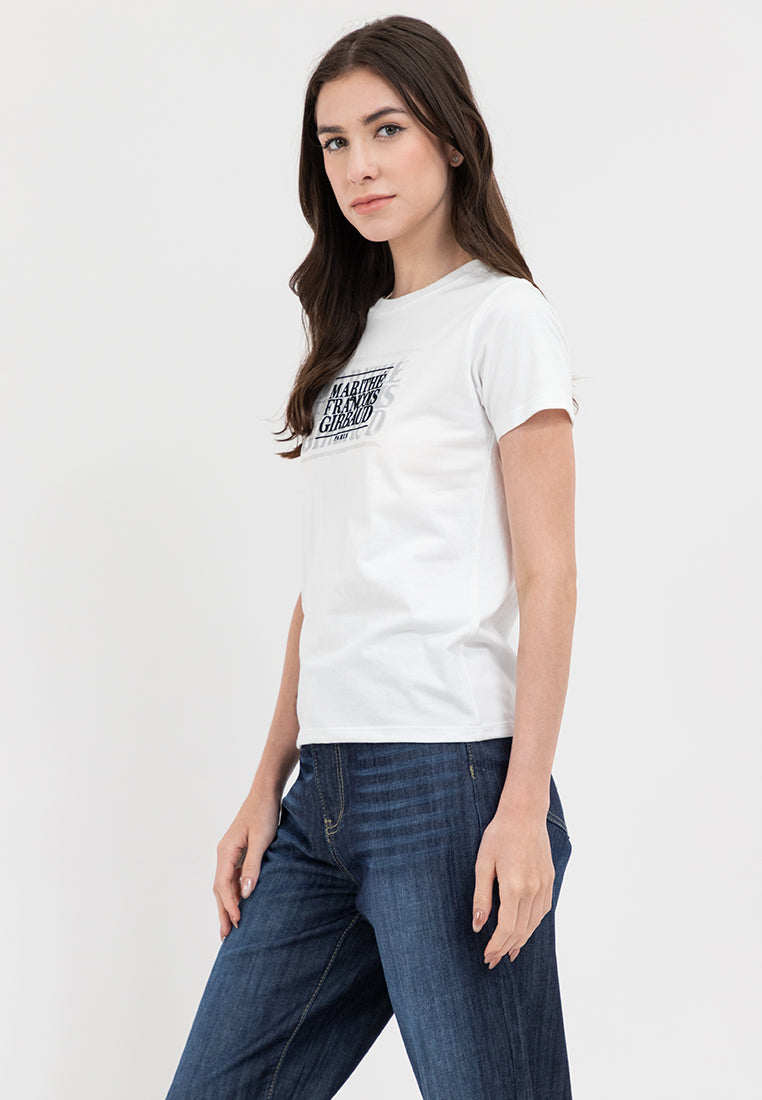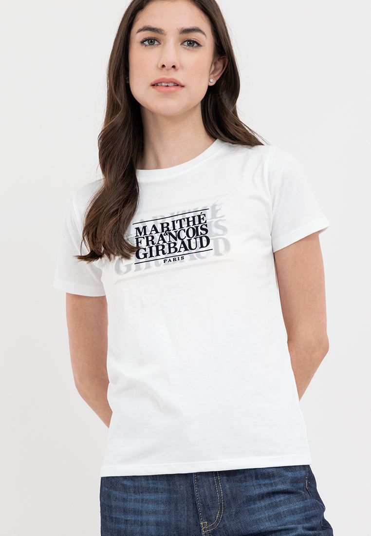 Expand your wardrobe rotation with Marithe + Francois Girbaud's Women's Le Fantome Tee, featuring a branding graphic across its chest and a timeless colorway for versatile styling.